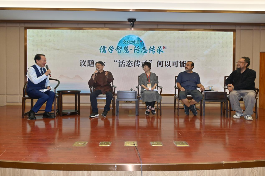 当天下午,“乡村儒学活态传承的榉溪样本”文化对话精彩继续。在文化学者萨苏的主持下,海内外学者围绕儒学在当代乡村的活化利用展开深入讨论。值得一提的是,榉溪村杏坛书院主理人卢震作为本地文化传承的代表,与梁涛、颜炳罡、王旭烽、张士闪等学者同台对话,从实践角度分享了榉溪村儒学传承的鲜活经验。