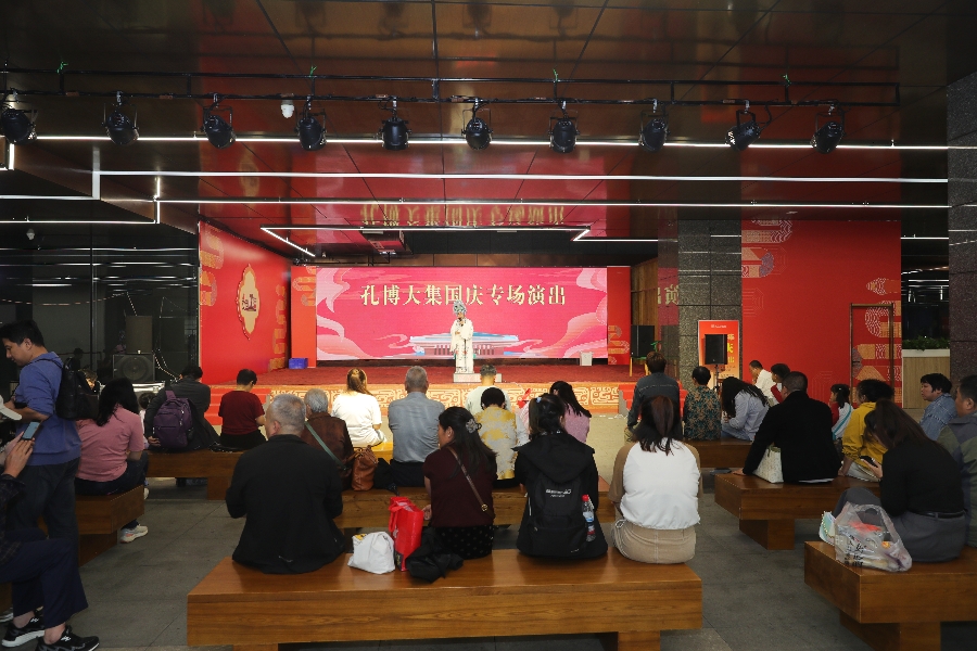 为让八方观众尽兴而归,箫韶乐团在保障观演体验的基础上,增加了演出场次与座位,特别策划“双节”主题曲目,让传统雅乐与节日氛围在“八音克谐”中碰撞,为观众带来一场视听与情感的双重盛宴。孔博大集上的专场演出充满了浓浓的地域特色,山东梆子、古筝等传统曲艺轮番登场,醇厚的乡土情韵与古老的艺术韵律交织回荡,让非遗艺术在活态传承中绽放光彩。